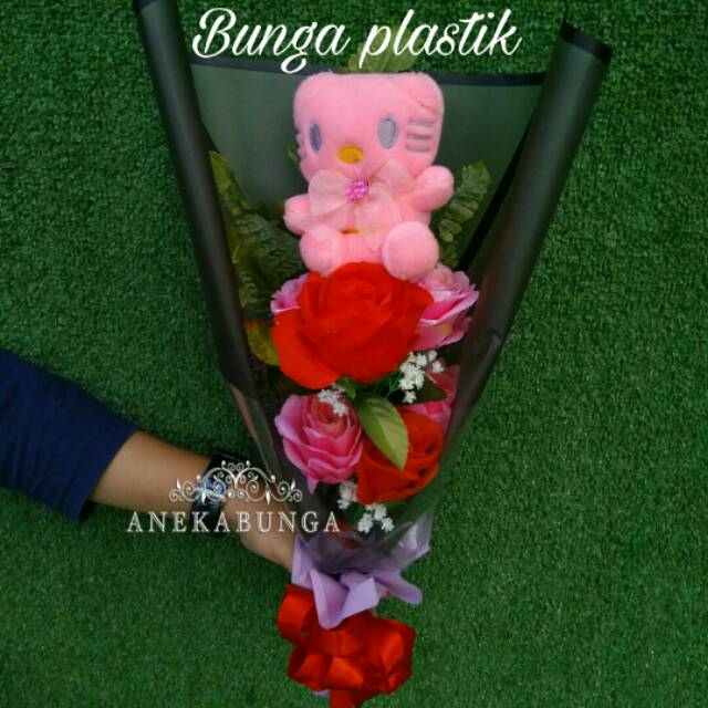 Buket Bunga Plastik Simple / Potong pangkas sebelum di kemas pilih pilah, dipadu padankan diikat, diselotip, dibungkus plastik tampak berkelas pelanggan puas.